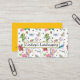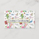 A business card for environmental awareness landscaping to grow natural habitats to feed and shelter birds, pollinators, and wildlife decorated with a variety of insects hand-illustrated with ink and watercolor and informative text for you to edit with your own details. On the reverse is a shade of bright orange and text you can edit to fit your needs.