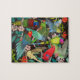 La peinture originale de beaux-arts des perroquets colorés des perruches et du pionus à la prune a dirigé des perruches et le rosella par l'artiste Carolyn McFann sur un puzzle denteux de qualité pour des fans de perroquet.