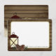 Rustic barn wood, lantern and pine cone design flat card thank you card. Charming front and back design with text that can be changed or add text as preferred.