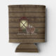 Rustic antique lantern and pine cones over barn wood design. Eat, drink and be married typography style text can holder with the bride and groom's names and wedding date to customize.