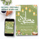 A meaningful card depicting a serene garden, hanging lanterns, and the Holy Quran. Perfect for sharing the spiritual joy of Eid al-Fitr.