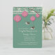 Four, hanging, Chinese paper lanterns are featured hanging from a bamboo branch. Two birds fly over your personalization in this delightful invitation. Suitable for just about any happy occasion. Want to save money? Print this invitation on the basic, square corner paper.