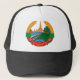 The national emblem of Laos shows the national shrine Pha That Luang. A dam is pictured which as a symbol of power generation at the reservoir Nam Ngun, an asphalt street is also pictured, as well as a stylized watered field. In the lower part is a section of a gear wheel. The inscription on the left reads "Peace, Independence, Democracy" and on the right, "Unity and Prosperity".