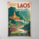 Laos retro vector travel design. From the UNESCO city of Luang Prabang and the spiritual charm of Vientiane to the natural beauty of Kuang Si Falls and the Plain of Jars, Laos offers an authentic blend of nature, history, and tranquility.