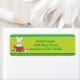 Cette étiquette d'adresse de retour personnalisée présente un arrière - plan vert pâle bordé de bandes diagonales dans deux tons de vert. Des champignons rouges et blancs et une moelle d'arbre avec un lapin gris-bleu tenant des fleurs roses et violettes se trouvent à gauche de la zone modèle pour vous permettre d'ajouter votre adresse ou autre texte personnalisé. Trouver la coordination des articles de fête d'anniversaire dans ma collection "Woodland Animals Party" Clip art par Prettygrafik design etsy.com/shop/Prettygrafikdesign