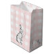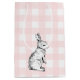 Ce mignon sac cadeau présente un design en vichy intemporel et un lapin lapin dessiné à la main.