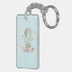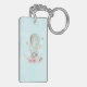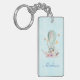 Porte - clé acrylique avec votre nom personnalisé. Le texte peut être supprimé si vous le souhaitez. Conçu avec une charmante illustration d'un petit lapin qui longe une montgolfière ornée d'un joli ruban, de fleurs et de papillons.