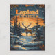 A serene and nostalgic depiction of Lapland, Finland, known for its pristine wilderness, snowy landscapes, and unique cultural heritage. The design features the region's iconic reindeer, Northern Lights dancing across the night sky, and cozy log cabins nestled in snow-covered forests, all illustrated in a vintage style. This artwork captures the tranquil beauty and adventurous spirit of Lapland, inviting viewers to experience its magical atmosphere and Arctic wonders.