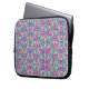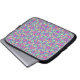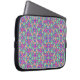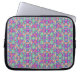 Laptop sleeve with vibrant, symmetrical pattern featuring pink, purple, and green floral and geometric motifs. Stylish and colorful, the design is repeated seamlessly.