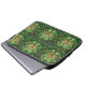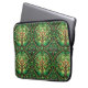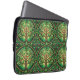 Laptop sleeve with vibrant tree of life pattern in green, featuring intertwined branches and leaves within circular frames. The design is repeated and symmetrical.