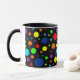 Un motif audacieux de tache avec les points colorés inégaux sur le noir.