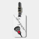 Personalized Black and White with Red Lacrosse Luggage bag tag with a simple cute lacrosse stick graphic and custom name or text in a feminine girly and modern pretty script font monogram. Any girls or womens lacrosse team member or club player will love the fun and cute design of this lacrosse themed gift that will help their bag stand out for travel and competitions.