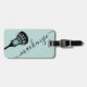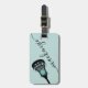 Personalized Teal Blue Turquoise Lacrosse Luggage bag tag with a simple cute lacrosse stick graphic and custom name or text in a feminine girly and modern pretty script font monogram. Any girls or womens lacrosse team member or club player will love the fun and cute design of this lacrosse themed gift that will help their bag stand out for travel and competitions.