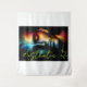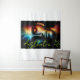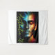 Aesthetic Duality Art Tapestry. Vibrant, abstract portrait blending cool and warm tones with customizable "Aesthetic Art" text. Perfect as a striking wall accent. Large 68" x 80" size.