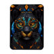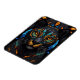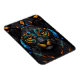 Large Black Cat Mosaic stained Glass effect Cushion . Colorful Orange eyes set on a black stained glass background with blues and green tiles. Magnet