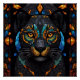 Large Black Cat Mosaic stained Glass effect Cushion . Colorful Orange eyes set on a black stained glass background with blues and green tiles. Poster