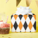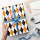 A wrapping paper designed with a black, orange and white harlequin pattern in large size. Customize the white background colour among other options.