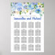 Beautiful blue hydrangeas create an elegant watercolor border at the top of this large 16-Table seating chart. A dash of purple hydrangeas give it depth and creamy white flowers keep it light and airy. Green, leaves and dangling vine, give it just a touch of Boho style. The wedding couple names are written in a bright blue trending script font. This blue floral seating chart is part of the Blue Hydrangea collection that contains signs, programs, menus, place cards and table decor that let you easily and affordably personalize your wedding ceremony and reception. You should see a link to it on this page. If you can' t find the link or need help with an item, please contact me.