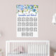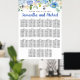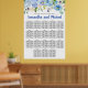 Beautiful blue hydrangeas create an elegant watercolor border at the top of this large 18-Table seating chart. A dash of purple hydrangeas give it depth and creamy white flowers keep it light and airy. Green, leaves and dangling vine, give it just a touch of Boho style. The wedding couple names are written in a bright blue trending script font. This blue floral seating chart is part of the Blue Hydrangea collection that contains signs, programs, menus, place cards and table decor that let you easily and affordably personalize your wedding ceremony and reception. You should see a link to it on this page. If you can' t find the link or need help with an item, please contact me.