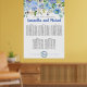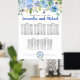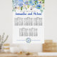 Beautiful blue hydrangeas create an elegant watercolor border at the top of this large 5-Table seating chart. A dash of purple hydrangeas give it depth and creamy white flowers keep it light and airy. Green, leaves and dangling vine, give it just a touch of Boho style. The wedding couple names are written in a bright blue trending script font. The wedding date is featured in a blue hydrangea wreath at the bottom. This blue floral seating chart is part of the Blue Hydrangea collection that contains signs, programs, menus, place cards and table decor that let you easily and affordably personalize your wedding ceremony and reception. You should see a link to it on this page. If you can' t find the link or need help with an item, please contact me.
