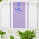 Large Blue Script Name, Lavender Stripes on White Kitchen Towel