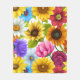 Large Bold Botanical Colourful Flowers Fleece Blanket