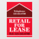 LARGE BOLD RETAIL FOR LEASE SIGNAGE Real Estate Window Cling. Click Personalize this template to customize the sign with the telephone number quickly and easily. LARGE BOLD RETAIL FOR LEASE SIGNAGE Real Estate Window Cling, is part of the Real Estate Collection in this store, where you will find many aids and different sizes and styles of signage to help you lease, rent and sell real estate. Ships Worldwide Fast.