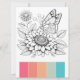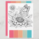 Immerse yourself in the art of colouring with our elegant colouring card, now available in a larger 6.5" x 8.75" format, designed specifically for adult women who appreciate both creativity and relaxation. This card features beautifully detailed butterfly line art complemented by a carefully selected colour palette guide, making your colouring choices easy and enjoyable. The palette, featuring vibrant shades of cherry reds, oranges, green and turquoise brings each butterfly and flower to life, transforming them into stunning works of art. Scan the QR-code on the back to learn how to use these colouring cards with watercolor pencils.