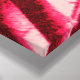 Wrapped canvas in a vintage botanical illustration of a single, large, camellia blossom, digitally enhanced and coloured, in deep wine red and shades of pastel to deep pink