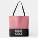 Cheer coach carry all your gear with you in this cute stylish large tote bag shown in pink and black colour block.