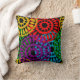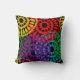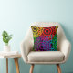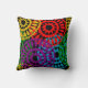 This throw pillow has a Black History design of large circles formed from raindrop shapes and circles in red, yellow, purple, green, and turquoise.