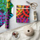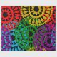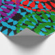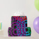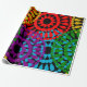 This wrapping paper has a Black History design of large circles formed from raindrop shapes and circles in red, yellow, purple, green, and turquoise.