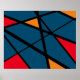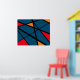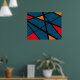 Large colourful modern geometrical abstract art poster print. Trendy wall decor for new home, bedroom, kitchen, living room, bathroom, corporate business, company office space, hall way, lounge area, cafe, bar, restaurant, hotel room, museum, house, garage etc. Big 30 x 24 inch geometrical artwork decorations ( about 76 x 60 cm). Frame and hang above or behind sofa, coach, bed, desk etc. Customizable colours to match any contemporary or luxury interior. Classy decorative design gifts for sale. Customizable sizes to fit any area. Dark orange red and blue warm expressive colours with black lines. Also available as thick canvas. Hang horizontal landscape or vertical way.