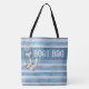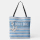 This custom designed boat bag is large enough to carry everything you need for a day on the water. Blue nautical stripes with a white anchor cover both sides of this beautiful tote. Great gift idea!