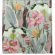 Large flowers, inflorescences, buds and lotus leaves, strelitzia and proteus on a light sage greeen background. Vintage seamless floral illustration. Square repeating design design for fabric