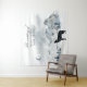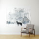 Romantic wilderness themed large size wedding backdrop tapestry, with beautiful watercolor artwork of foggy mountains, trees and a howling wolf. Personalize the text to suit your needs. Matching products are available.