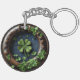 Circular piece featuring a large four-leaf clover surrounded by smaller clovers, set against a textured blue background. The circular frame has a vintage, metallic appearance with a weathered finish, creating a harmonious blend of nature and artistry.