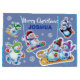 Incredibly detailed and colorful Christmas illustration of sledging snowgirls, skiing snowpeople and skating snowmen, plus band playing snowfolk, all set amidst a wonderfully snowy Winter Wonderland.