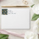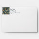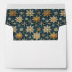 Card envelope with an insert of gold snowflakes on dark blue background. Customizable return address too.