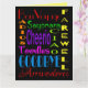 A gorgeous large size Farewell card for everyone to sign for that special person who's leaving! Design features bright coloured typography featuring well-known expressions for "Goodbye" in French, Italian, British, Spanish, Japanese & American! Inside is ready to personalize! A fantastic card with lots of room for everyone to sign their well wishes!