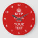 Large Keep Calm wall clock | Customizable vintage design. Create your own funny keep calm and carry on parody. Background colours can be changed too. Some of the best examples: Keep calm and party on. Keep calm and love me. Keep calm and drink tea.