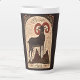 This large latte mug features a striking Aries ram with vivid red horns and swirling celestial motifs, from the Celestial Zodiac Art series.