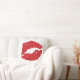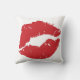 Large red lip print on throw pillow.