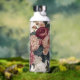 An elegant water bottle, thermal, with no ocean-killing plastic! Conservation benefits as well as a practical solution for keeping for keeping hot or cold sustenance nearby. The print design is a large floral print of giant deep mauve and pale pink peonies accent with white large viburnum and sumptuous foliage. Personalize options.