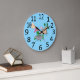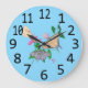 Add a pretty decorative touch and time to your wall with this butterfly wall clock. There are three colourful butterflies done in pointillism, enjoying various flowers. The butterflies are yellow, orange, and black and blue. The background is sky blue and that colour can be customized. The numbers are large and black. Thank you for shopping CherylsArt on Zazzle: http://www.zazzle.com/CherylsArt*/