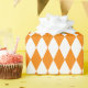 A wrapping paper designed with an orange and white harlequin pattern in large size. You can change the white for a different colour in an easy way.