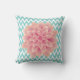 Large Pink Chrysanthemum and Turquoise Chevron Throw Pillow