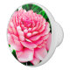 Large Pink Peony with Emerald Green Leaves Ceramic Knob