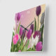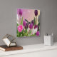 A beautiful garden of purple and white tulips. Accent the decor of any room with this bright and cheerful design.