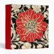 3 ring binder in a large, red, camellia flower, in an Art Nouveau inspired style, with a floral background in beige on black